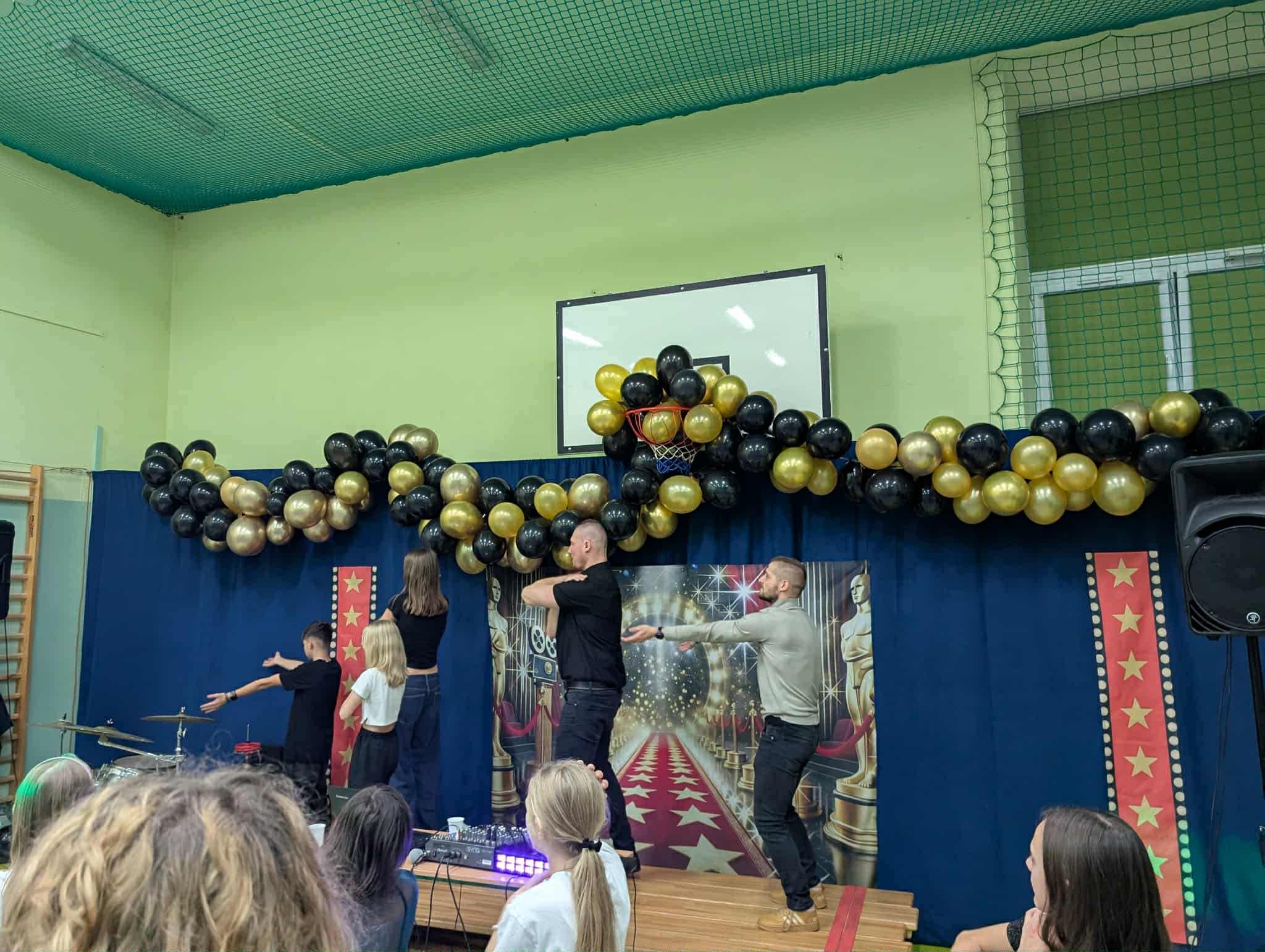 Nasza sala gimnastyczna zamieniła się w przestrzeń rodem z czerwonego dywanu. Migoczące światła, eleganckie dekoracje i wyjątkowa atmosfera sprawiły, że każdy mógł poczuć się jak prawdziwa gwiazda wieczoru.
